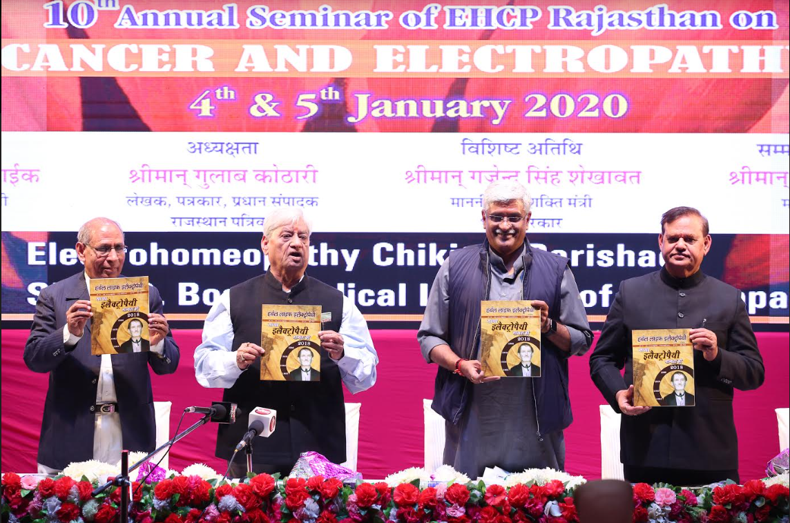 A 2-day seminar on Cancer Disease and Electropathy Medicine was organized in Jaipur under the joint aegis of Sir JC Bose Medical Institute of Electropathy and Electro-Homeopathy Chikitsa Parishad, Jaipur. Editor-in-Chief of Rajasthan Patrika Gulab Kothari, Union Water Power Minister Gajendra Singh Shekhawat, Deputy Leader of Opposition Rajendra Rathore, MP Ramcharan Bohra and MLA Shakuntala Rawat were present on the occasion. Treatment of cancer with electropathy was discussed in the seminar. More than 600 doctors from all over the country attended the seminar. A marvelous exhibition depicting the history of the system and its wide variety of medicine was also displayed. All the guests appreciated the history and medicines of electropathy and agreed to contribute towards the development of Electrohomeopathy.